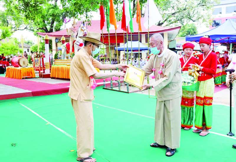 ရှမ်းပြည်နယ်(အရှေ့ပိုင်း) ကျိုင်းတုံမြို့ရှိ ဂုံရှမ်းတိုင်းရင်းသားတို့၏ (၆၁၁) ကြိမ်မြောက် ရိုးရာ မဟာ င်္ကြန်မင်္ဂလာစည်တော်တင်ပွဲကို ယနေ့နံနက်ပိုင်းတွင် စပ်လုံကတ်အောင်မြေ နတ်နန်း၌ ပြုလုပ်ရာ နိုင်ငံတော်စီမံအုပ်ချုပ်ရေးကောင်စီအဖွဲ့ဝင် ဦးစိုင်းလုံးဆိုင်၊ တြိဂံဒေသတိုင်း စစ်ဌာနချုပ် တိုင်းမှူး ဗိုလ်ချုပ်မျိုးမင်းထွန်းနှင့် တာဝန်ရှိသူများ၊ ရှမ်းတိုင်းရင်းသားရိုးရာ ယဉ်ကျေးမှုအဖွဲ့များနှင့် ဒေသခံ ရှမ်းတိုင်းရင်းသားများ တက်ရောက်ကြသည်။