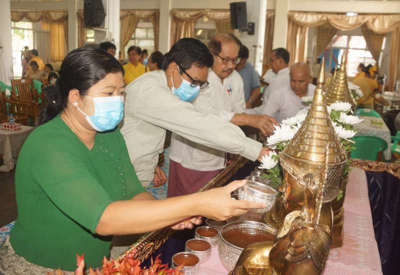 ရန်ကုန်တိုင်းဒေသကြီး ရခိုင်စာပေနှင့် ယဉ်ကျေးမှုအဖွဲ့ (ရန်ကုန်) နှင့် ရခိုင်လူမှုရေးအသင်းအဖွဲ့များ ပါဝင်ကျင်းပသည့် ရခိုင်ရိုးရာယဉ်ကျေးမှု သင်္ကြန်နံ့သာသွေးပွဲနှင့် ဘုရားရေသပ္ပါယ်ပွဲ အခမ်းအနားကို ယနေ့နံနက်(၉)နာရီက ရွှေတိဂုံဘုရားအရှေ့ဘက်မုခ်ရှိ ရခိုင်ပြည်နယ်ဓမ္မာရုံ၌ ကျင်းပခဲ့သည်။