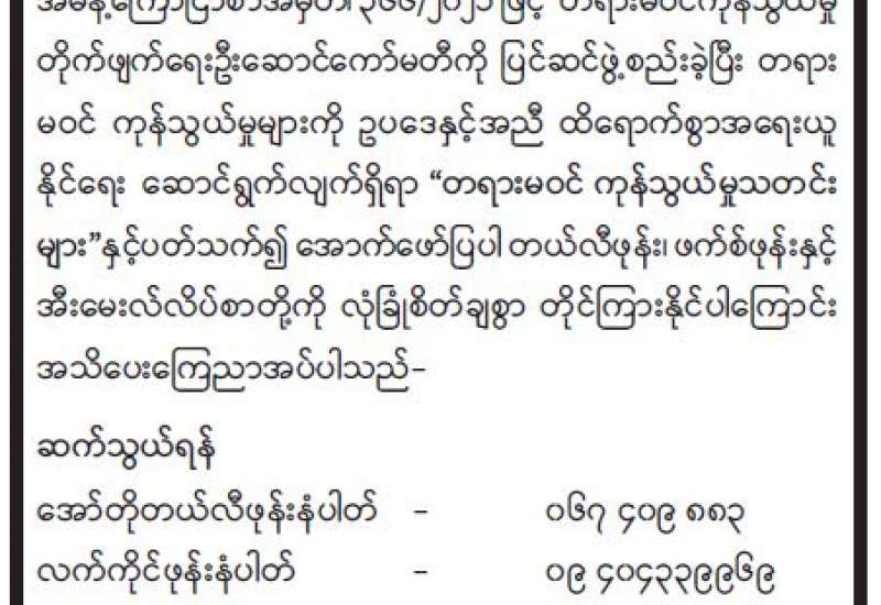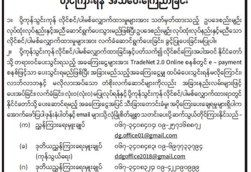 တရားမဝင်ကုန်သွယ်မှုတိုက်ဖျက်ရေး ဦးဆောင် ကော်မတီ၏ ကြီးကြပ်ကွပ်ကဲမှုဖြင့် တရားမဝင် ကုန်သွယ်မှုများကို ဥပဒေနှင့်အညီ ထိရောက်စွာ တားဆီးအရေးယူနိုင်ရေး ဆောင်ရွက်လျက်ရှိရာ ဧပြီ ၉ ရက်တွင် အကောက်ခွန်ဦးစီးဌာန၏ စီမံခန့်ခွဲမှုဖြင့် မြန်မာစက်မှုဆိပ်ကမ်း ကုန်သေတ္တာစစ်ဆေးရေးစခန်း၌ ဆိပ်ကမ်းတာဝန်ကျ အကောက်ခွန် စစ်ဆေးရေးအဖွဲ့က စစ်ဆေးမှုများ ဆောင်ရွက်ခဲ့ရာ သွင်းကုန်ကြေညာလွှာ ID တွင် ကြေညာထားခြင်းမရှိသော အလှကုန်ပစ္စည်းများ၊ ဖုန်းနှင့်ကွန်ပျူတာ အပိုပစ္စည်းများ၊ မော်တော်ယာဉ်အပိုပစ္စည်းများ၊ အိမ်သုံးလျှပ်စစ်ပစ္စည်းများနှင့် လုပ်ငန်းသုံးစက်ကိရိယာပစ္စည်းများ (ခန့်မှန်းတန်ဖိုးငွေကျပ် ၅၇၃၆၄၇၅၀၀) ကို ဖမ်းဆီးရမိခဲ့ပြီး အကောက်ခွန်ဥပဒေနှင့်အညီ အရေးယူ ဆောင်ရွက်လျက် ရှိသည်။