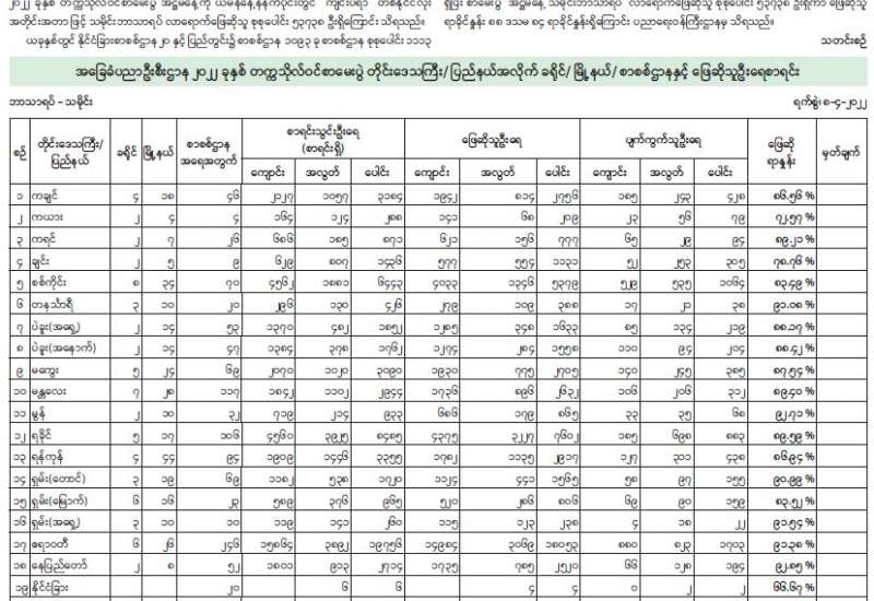 ၂၀၂၂ ခုနှစ် တက္ကသိုလ်ဝင်စာမေးပွဲ နဝမနေ့ကို ယနေ့နံနက်ပိုင်းတွင် ကျင်းပရာတစ်နိုင်ငံလုံး အတိုင်းအတာဖြင့် စိတ်ကြိုက်မြန်မာစာ လာရောက်ဖြေဆိုသူ စုစုပေါင်း ၃ ဦး ရှိကြောင်း သိရသည်။