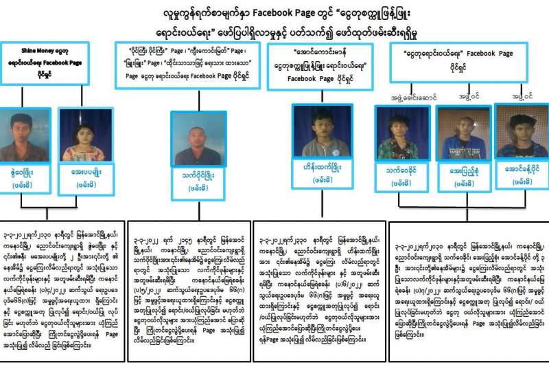 မသမာသူများအနေဖြင့် လူမှုကွန်ရက်ဖြစ်သည့် Facebook တွင် အမည်အမျိုးမျိုးဖြင့် ကိုယ်ပိုင် Page များ ဖွင့်လှစ်အသုံးပြုကာ ငွေစက္ကူ အတုများ ဝယ်ယူရရှိနိုင်ကြောင်း ယုံကြည်အောင်ပြော ဆို၍ ၎င်းတို့နှင့်ဆက်သွယ်လာသူ ငွေစက္ကူ အတုဝယ်ယူလိုသူများထံမှ ငွေကြေးလိမ်လည် ရယူမှုများ ဖြစ်ပွားလျက်ရှိသဖြင့် အဆိုပါ Facebook အကောင့်ပိုင်ရှင်များအား ဖမ်းဆီး ရမိရေးအတွက် အထူး အမှုစစ်အဖွဲ့များ ဖွဲ့စည်း၍ နည်းပညာအကူအညီရယူကာ စုံစမ်းရှာ ဖွေဖော်ထုတ်ခဲ့ရာ လူမှုကွန်ရက် စာမျက်နှာပေါ်တွင် ငွေစက္ကူ