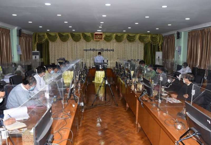 ဘင်္ဂလားပင်လယ်အော်တွင်ဖြစ်ပေါ်နေသော မုန်တိုင်းငယ်နှင့်ပတ်သက်၍ ကြိုတင်ပြင်ဆင် ဆောင်ရွက်နိုင်ရန်အတွက် လုပ်ငန်းညှိနှိုင်းအစည်းအဝေးကို ယနေ့နံနက်ပိုင်းတွင် ဧရာဝတီ တိုင်းဒေသကြီး အစိုးရအဖွဲ့ရုံး၊ အစည်းအဝေးခန်းမ(၁)၌ ပြုလုပ်ရာ တိုင်းဒေသကြီးဝန်ကြီးချုပ် ဦးတင်မောင်ဝင်း၊ အနောက်တောင်တိုင်းစစ်ဌာနချုပ် တိုင်းမှူး ဗိုလ်ချုပ်အောင်အောင်နှင့် ဌာနဆိုင်ရာတာဝန်ရှိသူများ တက်ရောက်ကြပြီး ခရိုင်(၅)ခရိုင်မှ သဘာဝဘေးအန္တရာယ်ဆိုင်ရာ စီမံခန့်ခွဲမှုအဖွဲ့ ဥက္ကဋ္ဌများက Video Con ferencing စနစ်ဖြင့်တက်ရောက်ကြသည်။