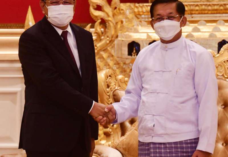 နိုင်ငံတော်စီမံအုပ်ချုပ်ရေးကောင်စီဥက္ကဋ္ဌ နိုင်ငံတော်ဝန်ကြီးချုပ် ဗိုလ်ချုပ်မှူးကြီး မင်းအောင်လှိုင် အာဆီယံအလှည့်ကျဥက္ကဋ္ဌ၏ မြန်မာနိုင်ငံဆိုင်ရာအထူးကိုယ်စားလှယ် ကမ္ဘောဒီးယားနိုင်ငံ ဒုတိယဝန်ကြီးချုပ်၊ နိုင်ငံခြားရေးနှင့် အပြည်ပြည်ဆိုင်ရာ ပူးပေါင်း ဆောင်ရွက်ရေးဝန်ကြီး H.E. Mr. Prak Sokhonn နှင့် အာဆီယံအတွင်းရေးမှူးချုပ် H.E. Dato Lim Jock Hoi တို့အား ယနေ့နံနက် ၁၀ နာရီခွဲတွင် နေပြည်တော်ရှိ နိုင်ငံတော်စီမံ အုပ်ချုပ်ရေးကောင်စီဥက္ကဋ္ဌရုံး၊ သံတမန်ဆောင်ဧည့်ခန်းမ၌ လက်ခံတွေ့ဆုံသည်။
