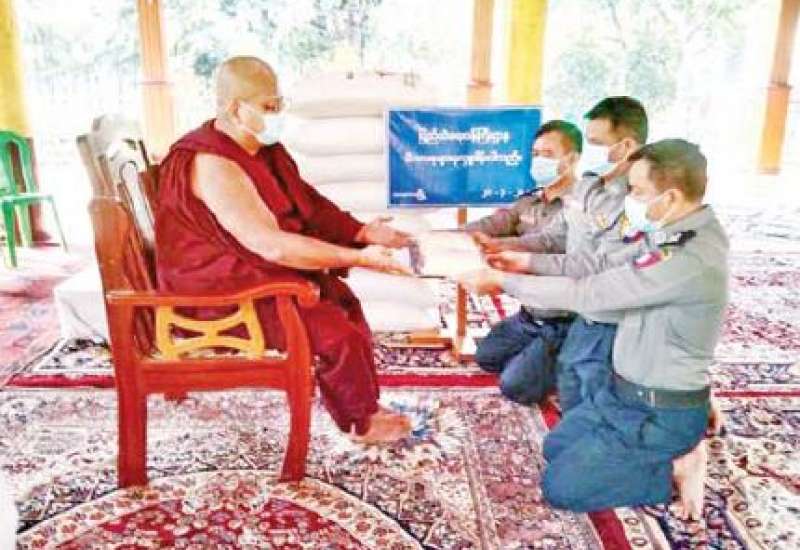 ပြည်ထဲရေးဝန်ကြီးဌာန တပ်ဖွဲ့ဝင်/ ဝန်ထမ်း အရာထမ်း၊ အမှုထမ်းမိသားစုများက မြို့နယ်အသီးသီးရှိ ဘုန်းတော်ကြီးကျောင်းများသို့ ဆွမ်းဆန်တော်များ ဆက်ကပ်လှူဒါန်းခြင်းကို ဆောင်ရွက်လျက်ရှိသည်။