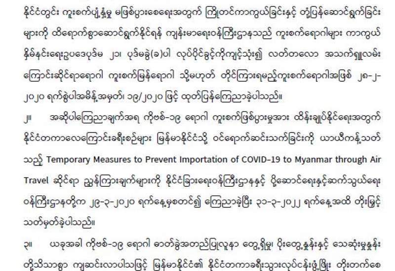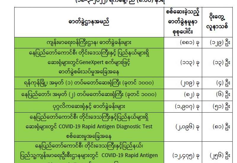 ကျန်းမာရေးဝန်ကြီးဌာနအနေဖြင့် နိုင်ငံအတွင်း ကူးစက်ဖြစ်ပွားနေသော COVID-19 ရောဂါ ကာကွယ်၊ ကုသ၊ ထိန်းချုပ်ရေးလုပ်ငန်းများကို အရှိန်အဟုန်မြှင့်ဆောင်ရွက်လျက်ရှိပါသည်။