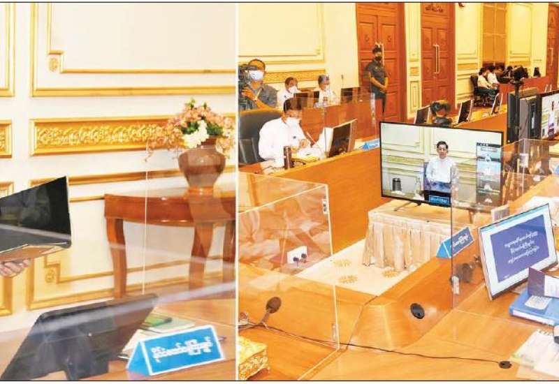 ကိုဗစ်-၁၉ ကြောင့် ဖြစ်ပေါ်လာနိုင်သည့် စီးပွားရေးသက်ရောက်မှုများအပေါ် ကုစားရေး လုပ်ငန်းကော်မတီ၏ အစည်းအဝေး (၂/၂၀၂၂) ကို ယနေ့နံနက်ပိုင်းတွင် ရင်းနှီးမြှုပ်နှံမှုနှင့် နိုင်ငံခြား စီးပွားဆက်သွယ်ရေးဝန်ကြီးဌာန၌ Video Conferencing ဖြင့် ကျင်းပသည်။
