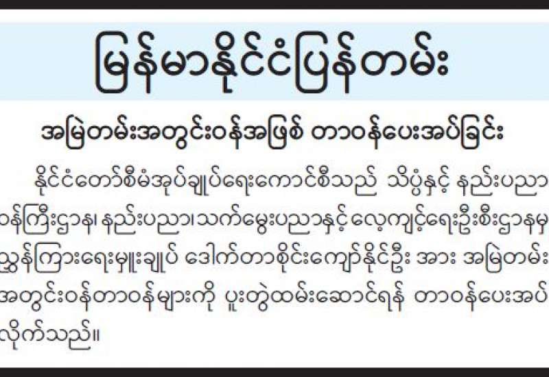 အမြဲတမ်းအတွင်းဝန်အဖြစ် တာဝန်ပေးအပ်ခြင်း