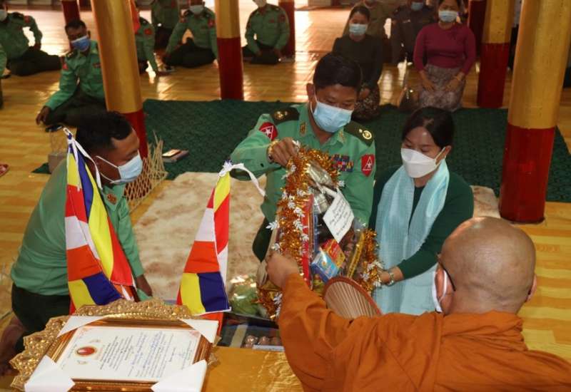 တပ်မတော် (ကြည်း၊ ရေ၊ လေ) အရာရှိ၊ စစ်သည်၊ အရာထမ်း၊ အမှုထမ်းများနှင့် စေတနာရှင် အလှူရှင်များက မြို့နယ်အသီးသီးရှိ ဘုန်းတော်ကြီးကျောင်းများ၊ သာသနာ့နွယ်ဝင်သီလရှင်ကျောင်း များနှင့် ဘာသာရေးကျောင်းများသို့ ဆွမ်းဆန်တော်၊ ဆီ၊ ဆား၊ ပဲ အမယ် လေးမျိုးနှင့် လှူဖွယ်ပစ္စည်းများ လှူဒါန်းခြင်း၊ နေ့ဆွမ်းများ ဆက်ကပ်လှူဒါန်းခြင်းနှင့် ကျန်းမာရေးစစ်ဆေးပေးခြင်းများကို ဆောင်ရွက်လျက်ရှိ သည်။