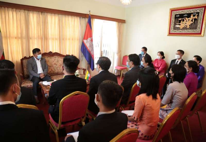(၁၉)ကြိမ်မြောက်အာဆီယံ တပ်မတော်ကာကွယ်ရေးဦးစီးချုပ်များ အစည်းအဝေး 19 th ASEAN Chiefs of Defence Forces Meeting (ACDFM-19) တက်ရောက်ရန် ကမ္ဘောဒီးယားနိုင်ငံသို့ရောက်ရှိနေ သည့် ညှိနှိုင်းကွပ်ကဲရေးမှူး(ကြည်း၊ရေ၊လေ) ဗိုလ်ချုပ်ကြီး မောင်မောင်အေး သည် ယနေ့ညနေပိုင်းတွင် ကမ္ဘောဒီးယားနိုင်ငံ ဆိုင်ရာ မြန်မာနိုင်ငံသံရုံးသို့သွားရောက်၍ သံရုံးနှင့်စစ်သံရုံး မိသားစုများ၊ သင်တန်း သားများအားတွေ့ဆုံ အမှာစကားပြောကြားသည်။