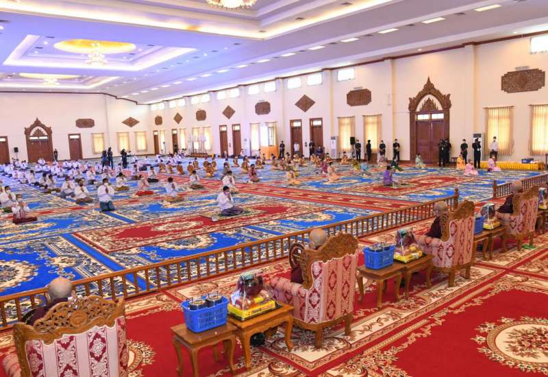 ၂၀၂၂ ခုနှစ်၊ သာသနာတော်ဆိုင်ရာ ဘွဲ့တံဆိပ်တော် ဆက်ကပ်ခံယူမည့် ဆရာတော်ကြီးများအား ပြည်ထောင်စုသမ္မတ မြန်မာနိုင်ငံတော်၊ နိုင်ငံတော်စီမံအုပ်ချုပ်ရေးကောင်စီဥက္ကဋ္ဌ နိုင်ငံတော်ဝန်ကြီးချုပ် ဗိုလ်ချုပ်မှူးကြီး မင်းအောင်လှိုင်နှင့် ဇနီးဒေါ်ကြူကြူလှတို့က ယနေ့နံနက်ပိုင်း တွင် နေပြည်တော်၊ ဥပ္ပါတသန္တိစေတီတော် မြတ်ကြီး ပရိဝုဏ်အတွင်းရှိ သာသနာ့မဟာဗိမာန်တော်ကြီး၌ နေ့ဆွမ်းဆက်ကပ် လှူဒါန်းသည်။