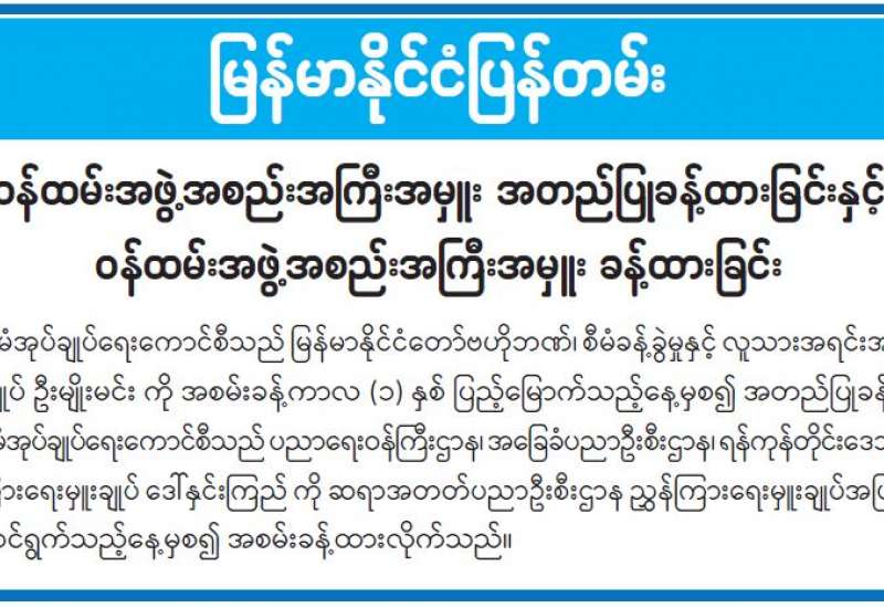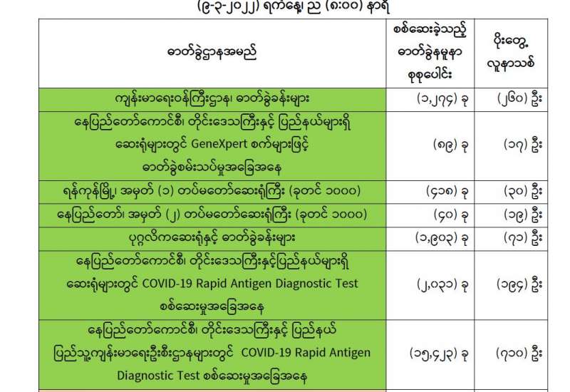 ကျန်းမာရေးဝန်ကြီးဌာနအနေဖြင့် နိုင်ငံအတွင်း ကူးစက်ဖြစ်ပွားနေသော COVID-19 ရောဂါ ကာကွယ်၊ ကုသ၊ ထိန်းချုပ်ရေးလုပ်ငန်းများကို အရှိန်အဟုန်မြှင့် ဆောင်ရွက်လျက်ရှိရာ ရောဂါထိန်းချုပ်ရေးလုပ်ငန်းများ အောင်မြင်နိုင်ရေးအတွက် ပြည်သူလူထုအနေဖြင့် ကျန်းမာရေးဝန်ကြီးဌာနမှ ထုတ်ပြန်ထားသော COVID-19 ရောဂါကာကွယ် ထိန်းချုပ်ရေးဆိုင်ရာ စည်းကမ်းများကို စနစ်တကျလိုက်နာ ဆောင်ရွက်ရန်လိုအပ်ပြီး COVID-19 ကာကွယ်ဆေး ထိုးနှံမှုခံယူခြင်းအား အထူးဂရုပြု ပူးပေါင်းဆောင်ရွက်ကြရန် လိုအပ်ပါသည်။