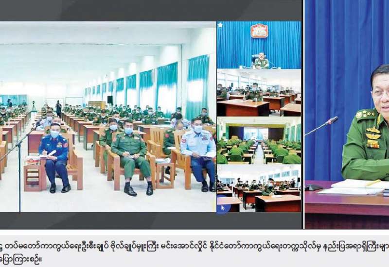 နိုင်ငံတော်ကာကွယ်ရေးတက္ကသိုလ်သည် နိုင်ငံတော်နှင့် တပ်မတော်အတွက် အရေးကြီးသည့် တက္ကသိုလ်တစ်ခုဖြစ်ပြီး သင်တန်းသားများကို မှန်ကန်သည့် အယူအဆများ၊ တိကျပြတ်သားသည့် ဆုံးဖြတ်ချက်များ ချမှတ်နိုင်ရေးနှင့် တိုင်းပြည်၏ ပကတိ အခြေအနေမှန်များကိုသိရှိကာ မှန်ကန်သည့် အတွေးအမြင်များ ရရှိစေရေးအတွက် နိုင်ငံ့အရေးကို ဆောင်ရွက်ရာတွင် နိုင်ငံရေး၊ စီးပွားရေး၊ အုပ်ချုပ်ရေးနှင့် ကာကွယ်ရေး စသည့် အမြင် ၄ မြင်ဖြင့် ထည့်သွင်းစဉ်းစား တွက်ချက်တတ်စေရန် ဆွေးနွေးပို့ချ ပေးလျက်ရှိကြောင်းဖြင့် နိုင်ငံတော်စီမံအုပ်ချုပ်ရေးကောင်စီဥက္ကဋ္ဌ၊ တပ်မတော်ကာကွယ်ရေး ဦးစီးချုပ် ဗိုလ်ချုပ်မှူးကြီး မင်းအောင်လှိုင်က ယနေ့နံနက်ပိုင်းတွင် နိုင်ငံတော် ကာကွယ်ရေးတက္ကသိုလ်မှ နည်းပြအရာရှိကြီးများနှင့် သင်တန်းသားအရာရှိကြီးများအား Video Conferencing ဖြင့် အမှာစကားပြောကြားစဉ် ထည့်သွင်းပြောကြားသည်။