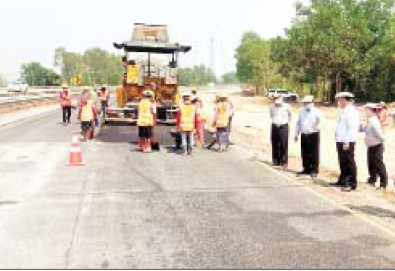 ဆောက်လုပ်ရေးဝန်ကြီးဌာန ဒုတိယဝန်ကြီး ဦးမင်းထိန်သည် မတ် ၃ ရက်နံနက်ပိုင်းတွင် ရန်ကုန် -မန္တလေး အမြန်လမ်းမကြီး မိုင်တိုင်အမှတ် (၁၃၈/၀ - ၁၃၉/၄)အတွင်း ၁ မိုင် ၄ ဖာလုံ AC လမ်းဟောင်းကို Milling Machine ဖြင့် ခြစ်ထုတ်ပြီး ၂၅ ပေ အကျယ် AC လမ်းသစ်ခင်းခြင်းလုပ်ငန်း ဆောင်ရွက်နေမှုကို ကြည့်ရှုစစ်ဆေးပြီး လိုအပ်သည်များ မှာကြားသည်။