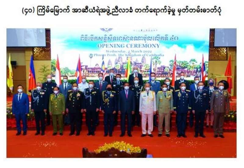 ပြည်ထဲရေးဝန်ကြီးဌာန၊ ဒုတိယဝန်ကြီး၊ မြန်မာနိုင်ငံရဲတပ်ဖွဲ့ ရဲချုပ် ဒုတိယဗိုလ်ချုပ်ကြီး သန်းလှိုင် ဦးဆောင်၍ အဆင့်မြင့်ရဲအရာရှိကြီးများပါဝင်သော မြန်မာကိုယ်စားလှယ်အဖွဲ့သည် ကမ္ဘောဒီးယားနိုင်ငံ၊ ဖနွမ်းပင်မြို့တွင် ၂၀၂၂ ခုနှစ်၊ မတ်လ ၁ ရက်မှ ၄ ရက်အထိ ကျင်းပပြုလုပ်သည့် (၄၀)ကြိမ်မြောက် အာဆီယံရဲအဖွဲ့ညီလာခံ (40th ASEANAPOL Conference) သို့ တက်ရောက်ခဲ့ပါသည်။