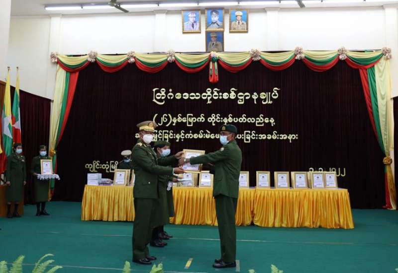 တြိဂံဒေသတိုင်းစစ်ဌာနချုပ်၏(၂၆)နှစ်မြောက် တိုင်းနှစ်ပတ်လည်နေ့ စစ်ရေးပြ အခမ်းအနားကို ယနေ့တွင် တိုင်းစစ်ဌာနချုပ် စစ်ရေးပြကွင်း၌ပြုလုပ်ရာ တိုင်းမှူး ဗိုလ်ချုပ် မျိုးမင်းထွန်းနှင့် အဖွဲ့ဝင်များ၊ အရာရှိ၊ စစ်သည်၊ မိသားစုဝင်များ၊ နယ်ဘက်ဌာန ဆိုင်ရာတာဝန်ရှိသူများနှင့် ဖိတ်ကြားထားသူများ တက်ရောက်ကြသည်။