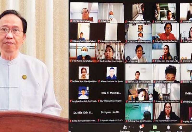 ဒသမအကြိမ်မြောက် မြန်မာနိုင်ငံ ပုဂ္ဂလိကဆေးရုံများအသင်း နှစ်ပတ်လည်အစည်းအဝေးကို ယနေ့ နံနက်၈ နာရီခွဲတွင် Virtual စနစ်ဖြင့် ကျင်းပရာ ပြည်ထောင်စုဝန်ကြီး ဒေါက်တာ သက်ခိုင်ဝင်း တက်ရောက်အမှာစကား ပြောကြားသည်။