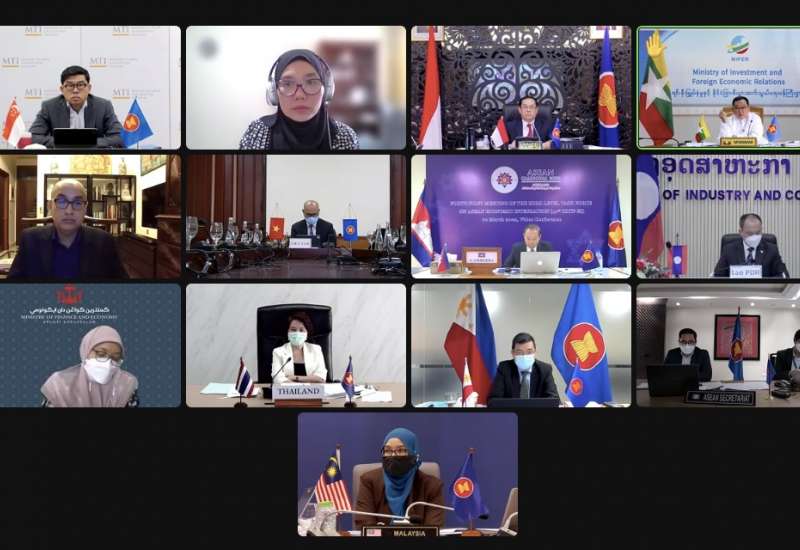 (၄၁)ကြိမ်မြောက် အာဆီယံစီးပွားရေး ပေါင်းစည်းမှုဆိုင်ရာ အဆင့်မြင့်လုပ်ငန်းအဖွဲ့ (41st Meeting of the High-level Task Force on ASEAN Economic Integration -HLTF-EI ) အစည်းအဝေးကို ယနေ့ နံနက်ပိုင်းတွင် ဗီဒီယိုကွန်ဖရင့်စနစ်ဖြင့် ကျင်းပရာ ရင်းနှီးမြှုပ်နှံမှုနှင့် နိုင်ငံခြားစီးပွားဆက်သွယ်ရေးဝန်ကြီးဌာန ဒုတိယဝန်ကြီး၊ မြန်မာနိုင်ငံ၏ အာဆီယံစီးပွားရေး ပေါင်းစည်းမှုဆိုင်ရာ အဆင့်မြင့်လုပ်ငန်းအဖွဲ့ဝင် ဦးသန်းအောင်ကျော်နှင့် တာဝန်ရှိသူများ တက်ရောက်ကြသည်။