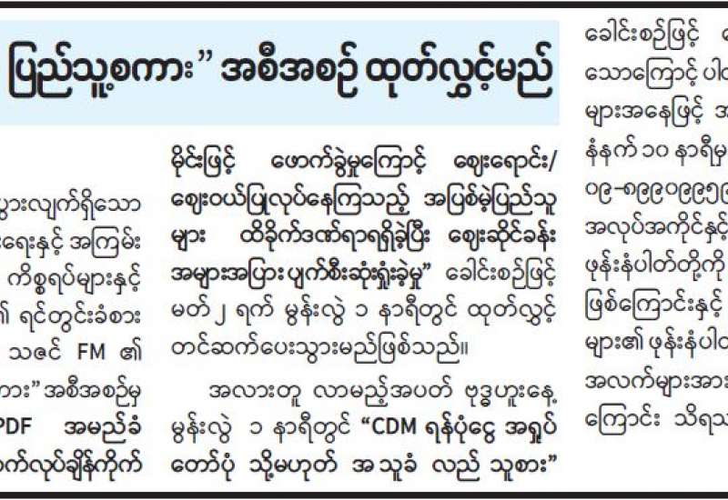 "ပြည်သူ့ကြားက ပြည်သူ့စကား" အစီအစဉ်ထုတ်လွှင့်မည် နေပြည်တော် မတ် ၁