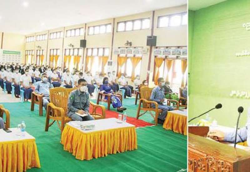 နယ်စပ်ရေးရာဝန်ကြီးဌာန ပညာရေးနှင့် လေ့ကျင့်ရေးဦးစီးဌာန ဗဟိုလေ့ကျင့်ရေးကျောင်းတွင် နယ်စပ်ဒေသများမှ တိုင်းရင်းသူများအတွက် အလုပ်အကိုင် အခွင့်အလမ်းရရှိရေး ခေတ်မီမော်တာ အထည်ချုပ်သင်တန်း အမှတ်စဉ် (၂၆) သင်တန်းဖွင့်ပွဲ အခမ်းအနားကို ယမန်နေ့ နံနက် ၈ နာရီခွဲတွင် သင်တန်းခန်းမ၌ ကျင်းပရာ နယ်စပ်ရေးရာဝန်ကြီးဌာန အမြဲတမ်းအတွင်းဝန် ဦးသိန်းဌေးဦး တက်ရောက်၍ သင်တန်း ဖွင့်ပွဲအမှာစကား ပြောကြားသည်။