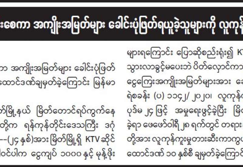 ပြည့်တန်ဆာအဖြစ် အဓမ္မခိုင်းစေကာ အကျိုးအမြတ်များ ခေါင်းပုံဖြတ်ရယူခဲ့သူများကို လူကုန်ကူးမှုဖြင့် ထောင်ဒဏ်ချမှတ် နေပြည်တော် မတ် ၁