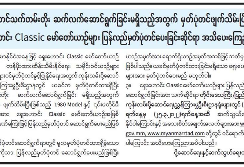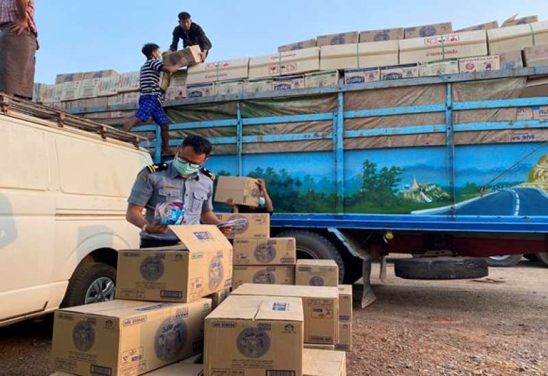 စီးပွားရေးနှင့်ကူးသန်းရောင်းဝယ်ရေး ဝန်ကြီးဌာနအနေဖြင့် ကိုဗစ်-၁၉ ရောဂါကာကွယ်၊ ထိန်းချုပ်၊ ကုသရေးဆိုင်ရာ ပစ္စည်းများကို လေကြောင်း၊ ပင်လယ်ရေကြောင်းနှင့် နယ်စပ်ကုန်သွယ်ရေးစခန်းများမှ နှောင့်နှေးကြန့်ကြာမှုမရှိ တင်သွင်းနိုင်ရေးအတွက် အချိန်နှင့်တစ်ပြေးညီ စီစဉ်ဆောင်ရွက်ပေးလျက်ရှိရာ ယနေ့တွင် ချင်းရွှေဟော် ကုန်သွယ်ရေးစခန်းမှ ကုမ္ပဏီ (၁)ခု၊ ယာဉ်စီးရေ (၅)စီးဖြင့် နှာခေါင်းစည်း(Mask) (၃၆)တန်ကို တင်သွင်းခဲ့ကြောင်း သိရသည်။