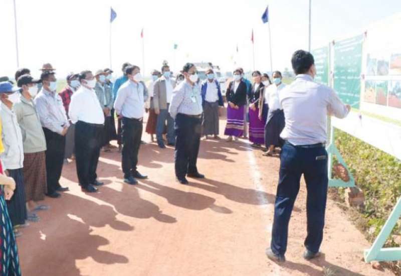 သမဝါယမနှင့် ကျေးလက်ဖွံ့ဖြိုးရေးဝန်ကြီးဌာန ပြည်ထောင်စုဝန်ကြီး ဦးလှမိုးသည် တာဝန်ရှိသူများနှင့်အတူ ယနေ့နံနက်ပိုင်းတွင် ပဲခူးတိုင်းဒေသကြီး ဒိုက်ဦးမြို့နယ် ဗျက်ကလေးကျေးရွာ၌ အကောင်အထည်ဖော်ဆောင်ရွက်လျက်ရှိသည့် ဆိုလာအသေးစား ဓာတ်အားပေးစနစ်လုပ်ငန်းခွင်သို့ကြည့်ရှု စစ်ဆေးရာတာဝန်ရှိသူများက အဆိုပါဓာတ်အားပေး စနစ်နှင့်စပ်လျဉ်း၍ ရှင်းလင်းတင်ပြကြသည်။