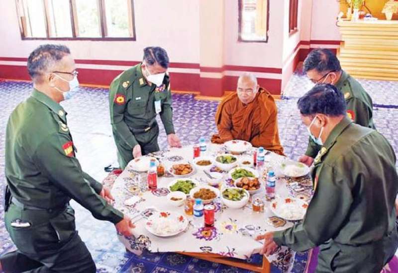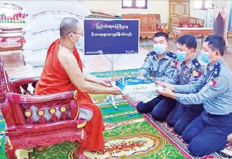ကိုဗစ်-၁၉ ရောဂါ ကြိုတင်ကာကွယ်ရေးလုပ်ငန်းများ ဆောင်ရွက်နေသည့် ကာလအတွင်း ဆွမ်းကိစ္စရပ်များအဆင်ပြေစေရန် ရည်ရွယ်၍ ပြည်ထဲရေးဝန်ကြီးဌာန၊ တပ်ဖွဲ့ဝင်ဝန်ထမ်း အရာထမ်း၊ အမှုထမ်း မိသားစုများက မြို့နယ်အသီးသီးရှိ ဘုန်းတော်ကြီးကျောင်းများသို့ ဆွမ်းဆန်တော်များ ဆက်ကပ်လှူဒါန်းခြင်းကို ဆောင်ရွက်လျက်ရှိသည်။