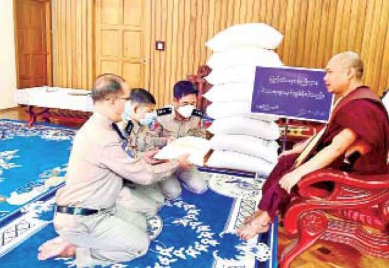 ကိုဗစ်-၁၉ ရောဂါ ကြိုတင်ကာကွယ်ရေး လုပ်ငန်းများ ဆောင်ရွက်နေသည့်ကာလအတွင်း ဆွမ်းကိစ္စရပ်များ အဆင်ပြေစေရန် ရည်ရွယ်၍ ပြည်ထဲရေးဝန်ကြီးဌာန တပ်ဖွဲ့ဝင်/ဝန်ထမ်း အရာထမ်း၊ အမှုထမ်း မိသားစုများက မြို့နယ်အသီးသီးရှိ ဘုန်းတော်ကြီးကျောင်းများသို့ ဆွမ်းဆန်တော်များ ဆက်ကပ်လှူဒါန်းခြင်းကို ဆောင်ရွက်လျက်ရှိသည်။
