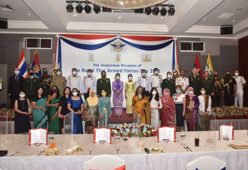 ထိုင်းဘုရင့်တပ်မတော်နေ့ ဧည့်ခံပွဲအခမ်းအနားကို ယနေ့နံနက်ပိုင်းတွင် ရန်ကုန်မြို့ရှိ Park Royal Hotel ၌ ကျင်းပရာ ကာကွယ်ရေးဦးစီးချုပ်ရုံး(ကြည်း) မှ ဒုတိယဗိုလ်ချုပ်ကြီး သက်ပုံ၊ ရန်ကုန်တိုင်းစစ်ဌာနချုပ်တိုင်းမှူး ဗိုလ်ချုပ် ညွန့်ဝင်းဆွေ၊ တပ်မတော်အရာရှိကြီးများ၊ ရန်ကုန် မြို့ရှိ နိုင်ငံခြားသံရုံးများမှ စစ်သံမှူးများနှင့် ဖိတ်ကြားထားသူများတက်ရောက်ကြသည်။