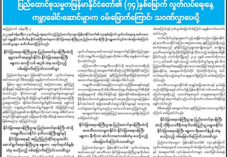 နိုင်ငံတစ်နိုင်ငံတွင် လွတ်လပ်ရေးဆုံးရှုံးရသည်ထက် ကြီးမားသည့်ဆုံးရှုံးမှုမရှိသောကြောင့် မိမိတို့နိုင်ငံ၏ အချုပ်အခြာအာဏာ တည်တံ့ခိုင်မြဲရေးအတွက် နိုင်ငံသားအားလုံးတွင် ထိန်းသိမ်းစောင့်ရှောက်ရန် အပြည့်အဝတာဝန်ရှိ