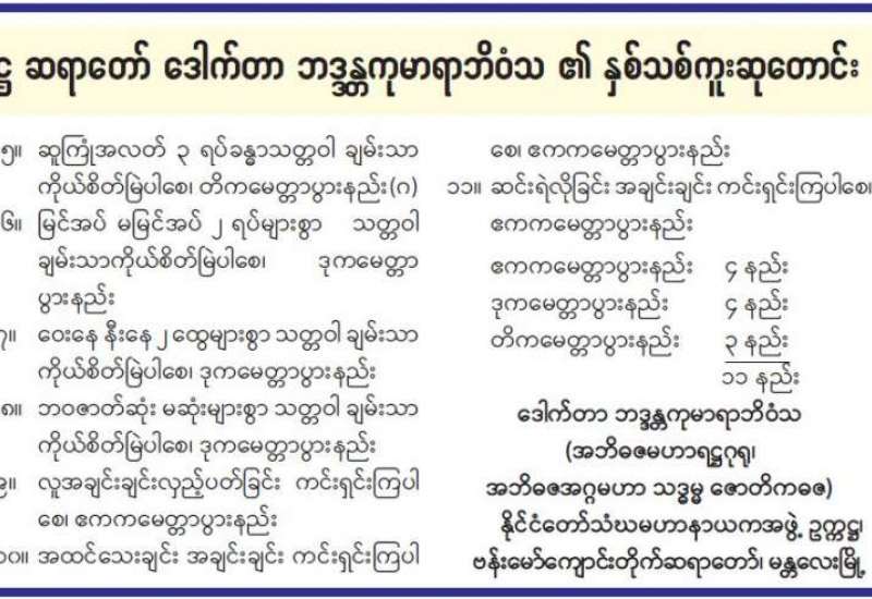 နေပြည်တော် ပြည်သူ့ဆေးရုံကြီး ခုတင်(၁၀၀၀) အစည်းအဝေးခန်းမဆောင်-၂ ၌၂၀၂၀-၂၀၂၁ ပညာသင်နှစ် အကူသူနာပြု (ပြင်ပ) ကိုးလသင်တန်းဆင်းပွဲ အခမ်းအနားကို ယနေ့ နံနက်ပိုင်းက ကျင်းပသည်။