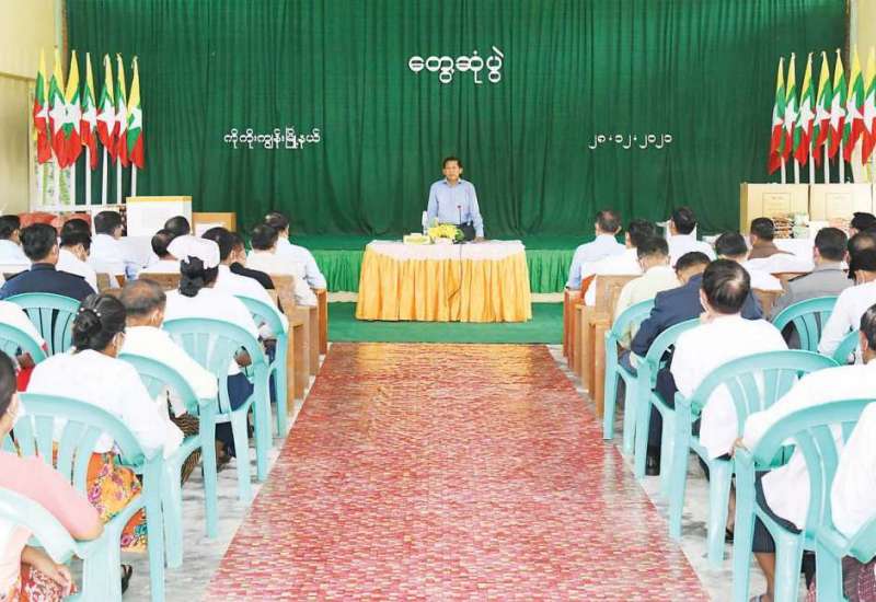 နိုင်ငံတော်စီမံအုပ်ချုပ်ရေးကောင်စီဥက္ကဋ္ဌ၊ နိုင်ငံတော်ဝန်ကြီးချုပ် ဗိုလ်ချုပ်မှူးကြီး မင်းအောင်လှိုင်သည် ကောင်စီဝင်များဖြစ်ကြသည့် ဗိုလ်ချုပ်ကြီး တင်အောင်စန်း၊ ဗိုလ်ချုပ်ကြီး မောင်မောင်ကျော်၊ ဒုတိယဗိုလ်ချုပ်ကြီးမိုးမြင့်ထွန်း၊ ကောင်စီတွဲဖက် အတွင်းရေးမှူး ဒုတိယဗိုလ်ချုပ်ကြီး ရဲဝင်းဦး၊ ပြည်ထောင်စုဝန်ကြီးများ၊ ရန်ကုန်တိုင်း ဒေသကြီးဝန်ကြီးချုပ်၊ ရန်ကုန်တိုင်းစစ်ဌာနချုပ်တိုင်းမှူး၊ ရန်ကုန်တိုင်းဒေသကြီး အစိုးရအဖွဲ့ စည်ပင်သာယာရေးဝန်ကြီးနှင့် တာဝန်ရှိသူများလိုက်ပါ၍ ယနေ့ မွန်းလွဲ ပိုင်းတွင် ရန်ကုန်တိုင်းဒေသကြီး၊ ကိုကိုးကျွန်း မြို့နယ်ရှိ ဌာနဆိုင်ရာဝန်ထမ်းများနှင့် ရပ်မိရပ်ဖများအား မြို့တော်ခန်းမ၌ တွေ့ဆုံသည်။
