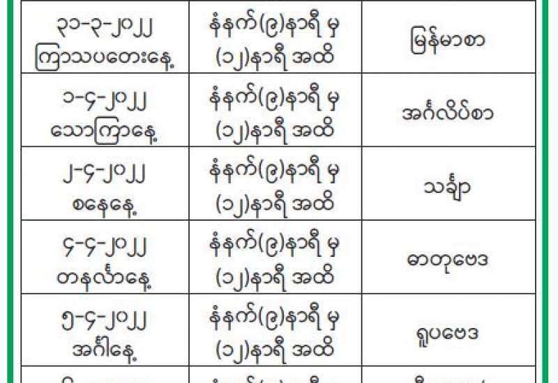 ၂၀၂၂ ခုနှစ် တက္ကသိုလ်ဝင်စာမေးပွဲ အချိန်စာရင်းကြေညာ