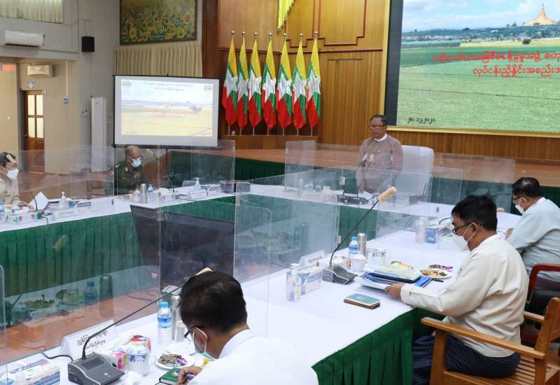နိုင်ငံ၏အဓိကစားနပ်ရိက္ခာဖြစ်သည့် ဆန်စပါးဖူလုံရေး၊ ဒေသအတွင်း သီးနှံ ထုတ်လုပ်မှု မြင့်မားရေး နှင့် စိုက်ပျိုးမွေးမြူရေးကိုအခြေခံသည့် စီးပွားဖွံ့ဖြိုးမှု တိုးတက်လာရေး အတွက် လယ်ယာမြေ များကို တည်ဆဲဥပဒေ နည်းဥပဒေများနှင့်အညီ စီမံဆောင်ရွက်လျက်ရှိသည့် ဗဟို လယ်ယာမြေ စီမံခန့်ခွဲမှုအဖွဲ့၏ လုပ်ငန်းညှိနှိုင်းအစည်းအဝေးကို ယနေ့ မွန်းလွဲပိုင်းက စိုက်ပျိုးရေး၊ မွေးမြူရေးနှင့် ဆည်မြောင်းဝန်ကြီးဌာန ပြည်ထောင်စု ဝန်ကြီးရုံး အစည်းအဝေးခန်းမတွင် ကျန်းမာ ရေးဆိုင်ရာ ညွှန်ကြားချက်များနှင့်အညီ ကျင်းပသည်။