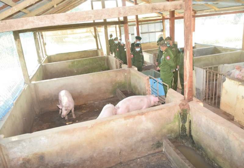 ဒေသတွင်းစားနပ်ရိက္ခာဖူလုံရေးနှင့် ပြည်သူများ၏ စားသောက်ရေးကို အထောက်အကူ ဖြစ်စေရန်အတွက် ယနေ့ညနေပိုင်းတွင် အနောက်တောင်တိုင်းစစ်ဌာနချုပ် တိုင်းမှူး ဗိုလ်ချုပ် အောင်အောင်နှင့် အဖွဲ့ဝင်များသည် ဧရာဝတီတိုင်းဒေသကြီး၊ ပုသိမ်မြို့၊ နယ်မြေခံတပ်ရင်းရှိ မွေးမြူရေးလုပ်ငန်း များအား သွားရောက်ကြည့်ရှု၍ တာဝန်ရှိသူများနှင့်တွေ့ဆုံကာ ကုန်ထုတ်လုပ်မှု လုပ်ငန်းများ ရာနှုန်းပြည့်ဆောင်ရွက်နိုင်ရေးနှင့် လိုအပ်သည်များ ပေါင်းစပ်ညှိနှိုင်း ဆောင်ရွက် ပေးခဲ့ကြောင်း သတင်းရရှိသည်။