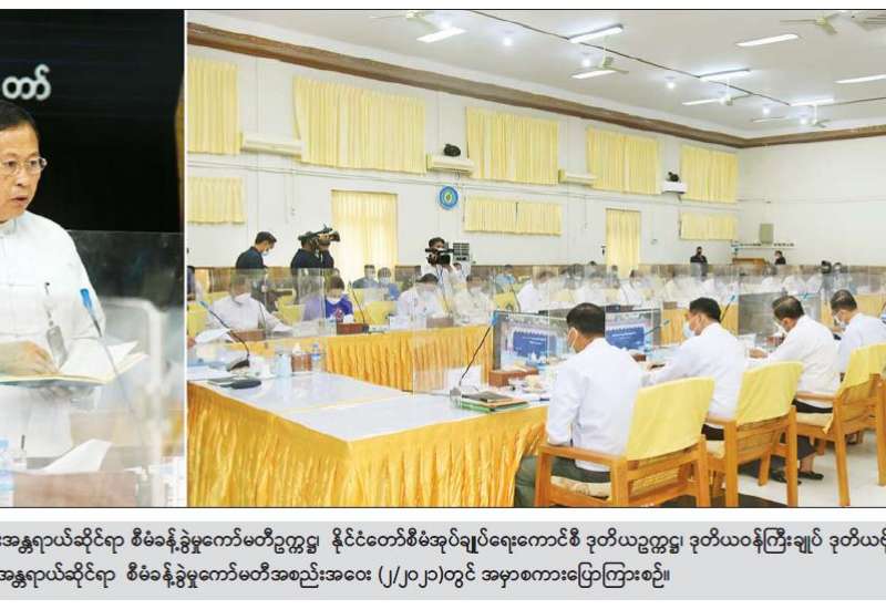 အမျိုးသားသဘာ၀ဘေးအန္တရာယ်ဆိုင်ရာ စီမံခန့်ခွဲမှုကော်မတီ အစည်းအဝေး (၂/၂၀၂၁) ကို ယနေ့မွန်းလွဲ ၁ နာရီတွင် နေပြည်တော်ရှိ လူမှုဝန်ထမ်း၊ ကယ်ဆယ်ရေးနှင့် ပြန်လည်နေရာ ချထားရေးဝန်ကြီးဌာန အစည်းအဝေးခန်းမ၌ကျင်းပရာ အမျိုးသားသဘာ၀ဘေး အန္တရာယ်ဆိုင်ရာ စီမံခန့်ခွဲမှု ကော်မတီ ဥက္ကဋ္ဌ၊ နိုင်ငံတော်စီမံအုပ်ချုပ်ရေး ကောင်စီဒုတိယဥက္ကဋ္ဌ၊ ဒုတိယဝန်ကြီးချုပ် ဒုတိယဗိုလ်ချုပ်မှူးကြီးစိုးဝင်း တက်ရောက်အမှာစကား ပြောကြားသည်။
