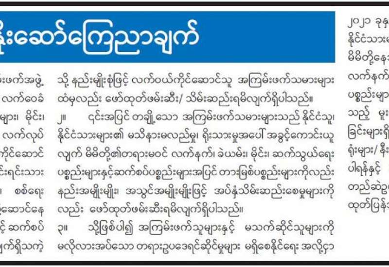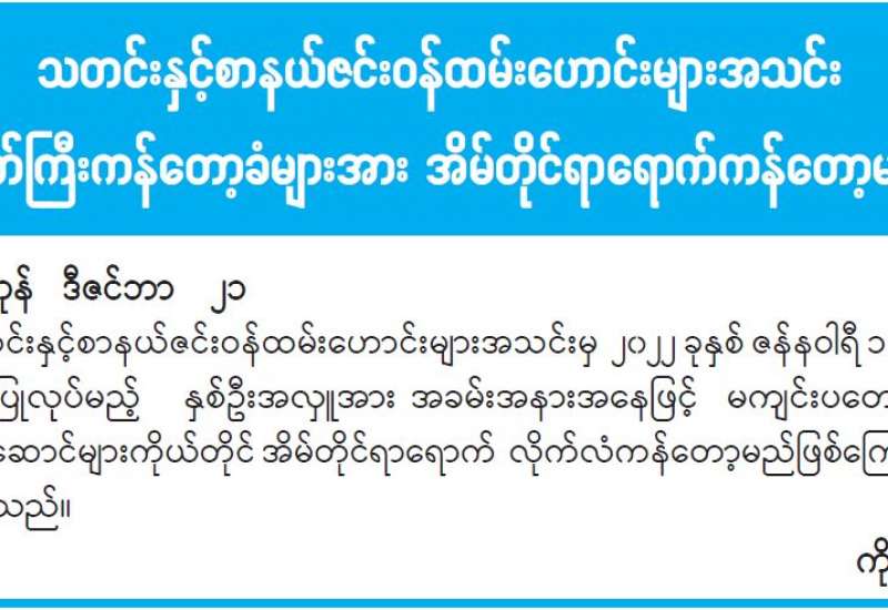 မြန်မာနိုင်ငံ ကလေးအလုပ်သမား ပပျောက်ရေးဆိုင်ရာ အမျိုးသားကော်မတီ၏ စောင့်ကြည့် အကဲဖြတ် စိစစ်ရေးလုပ်ငန်းကော်မတီ ဒုတိယအကြိမ် ညှိနှိုင်း အစည်းအဝေးကို ယနေ့ နံနက်ပိုင်းတွင် နေပြည်တော်ရှိ အလုပ်သမားဝန်ကြီးဌာန အစည်းအဝေးခန်းမ၌ ကျင်းပသည်။