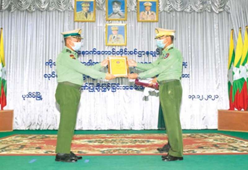 ဧရာဝတီတိုင်းဒေသကြီးအတွင်း ကိုဗစ်-၁၉ ရောဂါ ကာကွယ်၊ ထိန်းချုပ်၊ ကုသရေးလုပ်ငန်းများတွင် ပါဝင်ကူညီဆောင်ရွက်ပေးခဲ့ကြသည့် ကျန်းမာရေး ဝန်ထမ်းများအား ဂုဏ်ပြုချီးမြှင့်ခြင်းကို ယနေ့နေ့လယ်ပိုင်းတွင် အနောက်တောင် တိုင်းစစ်ဌာနချုပ်၊ ဧရာဝတီခန်းမ၌ ပြုလုပ်ရာ တိုင်းမှူး ဗိုလ်ချုပ် အောင်အောင်နှင့် တာဝန်ရှိသူများ၊ ကျန်းမာရေးဝန်ထမ်းများ တက်ရောက်ကြသည်။