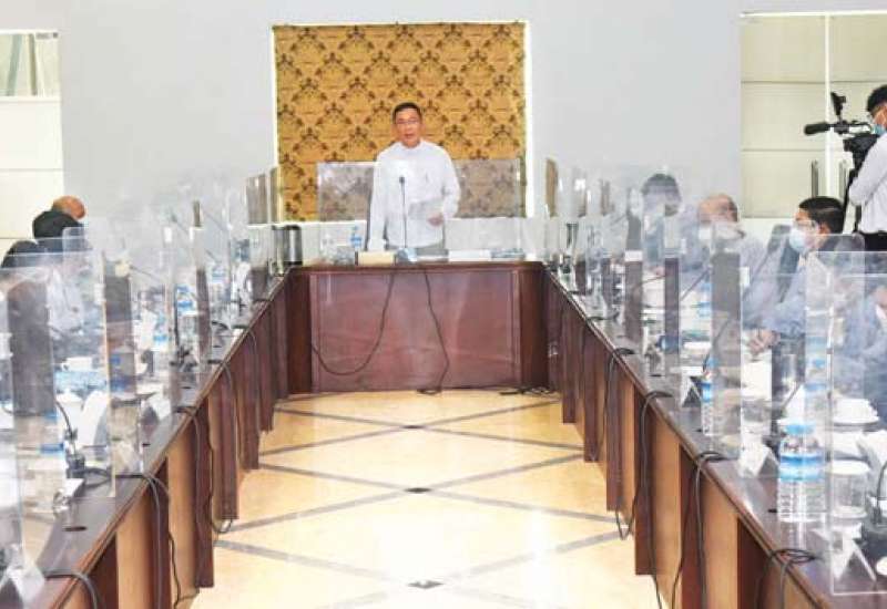 ရခိုင်ပြည်နယ်အတွင်း ဆောင်ရွက်လျက်ရှိသည့် ကိုဗစ်-၁၉ ရောဂါ ကာကွယ်၊ ထိန်းချုပ်၊ ကုသရေးဆိုင်ရာ လုပ်ငန်းညှိနှိုင်းအစည်းအဝေးကို ယနေ့တွင် စစ်တွေမြို့ရှိ ပြည်နယ်အစိုးရ အဖွဲ့ရုံးဧည့်ခန်းမ၌ ပြုလုပ်ကြရာ ရခိုင်ပြည်နယ်ဝန်ကြီးချုပ် ဒေါက်တာ အောင်ကျော်မင်း၊ အနောက်ပိုင်းတိုင်း စစ်ဌာနချုပ်တိုင်းမှူး ဗိုလ်ချုပ် ထင်လတ်ဦးနှင့် ဌာနဆိုင်ရာ တာဝန်ရှိသူများ၊ ကျန်းမာရေးဝန်ထမ်းများ တက်ရောက်ကြသည်။