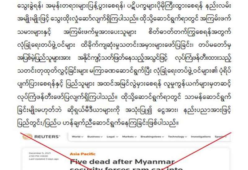 ဆိုရှယ်မီဒီယာများပေါ်တွင်ထွက်ပေါ်နေသည့် သတင်းတု၊ သတင်းမှားများနှင့်ပတ်သက်၍ သတင်းထုတ်ပြန်ချက်