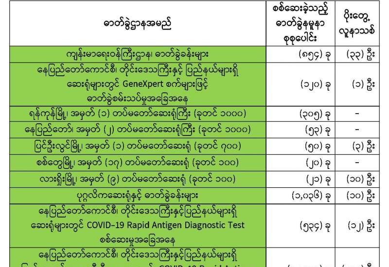 ကျန်းမာရေးဝန်ကြီးဌာနအနေဖြင့် နိုင်ငံအတွင်း ကူးစက်ဖြစ်ပွားနေသော COVID-19 ရောဂါ ကာကွယ်၊ ကုသ၊ ထိန်းချုပ်ရေးလုပ်ငန်းများကို အရှိန်အဟုန်မြှင့်ဆောင်ရွက်လျက်ရှိရာ ရောဂါထိန်း ချုပ်ရေးလုပ်ငန်းများ အောင်မြင်နိုင်ရေးအတွက် ပြည်သူလူထုအနေဖြင့် ကျန်းမာရေးဝန်ကြီးဌာနမှ ထုတ်ပြန်ထားသော COVID-19 ရောဂါကာကွယ်ထိန်းချုပ်ရေးဆိုင်ရာစည်းကမ်းများကို စနစ်တကျ လိုက်နာဆောင်ရွက်ရန်လိုအပ်ပြီး COVID-19 ကာကွယ်ဆေးထိုးနှံမှုခံယူခြင်းအား အထူးဂရုပြု ပူးပေါင်းဆောင်ရွက်ကြရန် လိုအပ်ပါသည်။