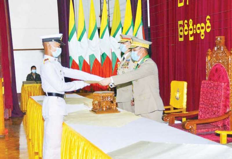 စစ်တက္ကသိုလ်ဗိုလ်လောင်းသင်တန်းအမှတ်စဉ် (၆၃) ပြန်တမ်းဝင်အရာရှိ ခန့်အပ်ခြင်း အခမ်းအနားကို ယနေ့နံနက်ပိုင်းတွင် စစ်တက္ကသိုလ် ဘွဲ့နှင်းသဘင်ခန်းမ၌ ကျင်းပရာ ကာကွယ်ရေးဦးစီးချုပ်ရုံး (ကြည်း)၊ စစ်ရာထူးခန့်ချုပ် ဒုတိယဗိုလ်ချုပ်ကြီး လင်းအောင်၊ ကာကွယ်ရေး ဦးစီးချုပ်ရုံးမှ တပ်မတော်အရာရှိကြီးများ၊ စစ်တက္ကသိုလ်ကျောင်းအုပ်ကြီး ဗိုလ်မှူးချုပ် ဇော်မင်းလတ်နှင့် ကျောင်းဆင်းဗိုလ်လောင်းများ တက်ရောက်ကြသည်။