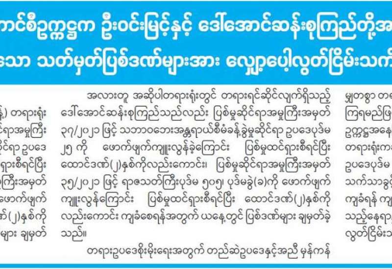 ပြန်ကြားရေးဝန်ကြီးဌာန ပြည်ထောင်စုဝန်ကြီး ဦးမောင်မောင်အုန်းသည် ယနေ့နံနက်ပိုင်းတွင် ရန်ကုန်မြို့ ဗဟန်းမြို့နယ်ရှိ မြန်မာ့အလင်း သတင်းစာတိုက်နှင့် တာမွေမြို့နယ်ရှိ The Global New Light of Myanmar သတင်းစာတိုက်တို့ကို သွားရောက်ကြည့်ရှုစစ်ဆေးပြီး ဝန်ထမ်းများအား ရင်းရင်းနှီးနှီး တွေ့ဆုံနှုတ်ဆက်အားပေးသည်။