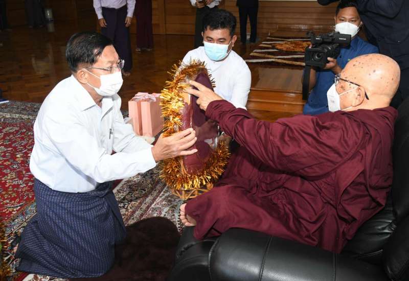 နိုင်ငံတော်စီမံအုပ်ချုပ်ရေးကောင်စီဥက္ကဋ္ဌ နိုင်ငံတော်ဝန်ကြီးချုပ် ဗိုလ်ချုပ်မှူးကြီး မင်းအောင်လှိုင်သည် ယနေ့မွန်းလွဲပိုင်းတွင် ဘာသာပေါင်းစုံ ချစ်ကြည်ညီညွတ်ရေး အဖွဲ့(ဗဟို) ဥက္ကဋ္ဌ ဦးစိန်သန်းနှင့် အလုပ်အမှုဆောင်များအား ရန်ကုန်တိုင်းစစ်ဌာနချုပ်၊ ကုန်းမြင့်သာရှိ ဇေယျာသီရိဗိမာန် ၌ ရင်းရင်းနှီးနှီးတွေ့ဆုံပြီး စားသောက်ဖွယ်ရာ ပစ္စည်းများ ပေးအပ်သည်။