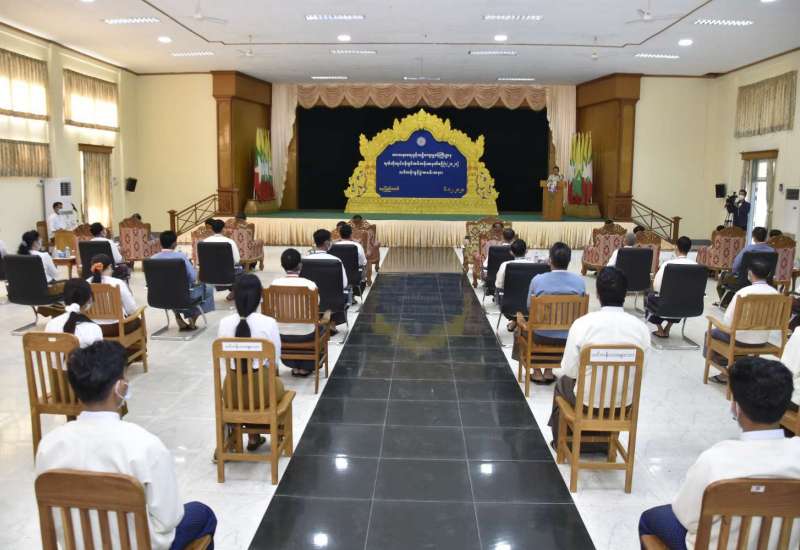 သာသနာရေးနှင့်ယဉ်ကျေးမှုဝန်ကြီးဌာန၌ တာဝန်ထမ်းဆောင်မည့် ပြည်ထောင်စုတိုင်းရင်း သားလူငယ်များ စွမ်းရည်ဖွံ့ဖြိုးရေးဒီဂရီကောလိပ် (ရန်ကုန်၊စစ်ကိုင်း) တို့မှ ကျောင်းဆင်း ဝန်ထမ်းများအထက် ဖွင့်လှစ်သည့် ရက်တိုလုပ်ငန်းခွင်သင်တန်းအမှတ်စဉ် (၁/၂၀၂၁) ဖွင့်ပွဲအခမ်း အနားကို ယနေ့နံနက် ၉ နာရီတွင် အဆိုပါဝန်ကြီးဌာန၊ စုပေါင်းအစည်းအဝေးခန်းမ၌ ကိုဗစ်-၁၉ ရောဂါ ကာကွယ်၊ ထိန်းချုပ်ရေးဆိုင်ရာ ညွှန်ကြားချက်များနှင့်အညီ ကျင်းပသည်။