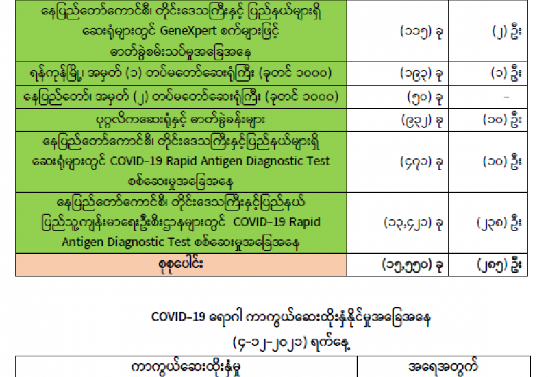 ကျန်းမာရေးဝန်ကြီးဌာနအနေဖြင့် နိုင်ငံအတွင်း ကူးစက်ဖြစ်ပွားနေသော COVID-19 ရောဂါ ကာကွယ်၊ ကုသ၊ ထိန်းချုပ်ရေးလုပ်ငန်းများကို အရှိန်အဟုန်မြှင့်ဆောင်ရွက်လျက်ရှိပါသည်။