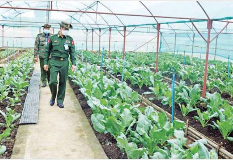 ဒေသတွင်းစားနပ်ရိက္ခာဖူလုံရေးနှင့် ပြည်သူများ၏ စားသောက်ရေးကို အထောက်အကူဖြစ်စေရန် အတွက် ယနေ့တွင် တြိဂံဒေသတိုင်းစစ်ဌာနချုပ်တိုင်းမှူး ဗိုလ်မှူးချုပ် မျိုးမင်းထွန်းနှင့် အဖွဲ့ဝင်များသည် တိုင်းစစ်ဌာနချုပ်၏ စိုက်ပျိုးမွေးမြူရေးလုပ်ငန်းများကို သွားရောက်ကြည့်ရှု၍ တာဝန်ရှိသူများနှင့် တွေ့ဆုံကာ ကုန်ထုတ်လုပ်မှုလုပ်ငန်းများ ရာနှုန်းပြည့်ဆောင်ရွက်နိုင်ရေးနှင့် လိုအပ်သည်များ ပေါင်းစပ်ညှိနှိုင်း ဆောင်ရွက်ပေးခဲ့ကြောင်း သတင်းရရှိသည်။