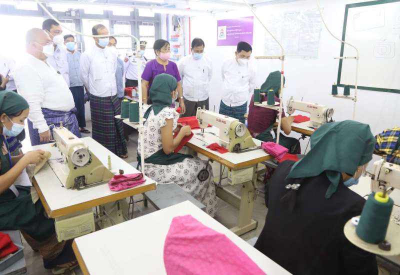 အလုပ်သမားဝန်ကြီးဌာန ပြည်ထောင်စုဝန်ကြီး ဦးမြင့်ကြိုင်၊ ဒုတိယဝန်ကြီးများ ဖြစ်ကြသည့် ဦးဝင်းရှိန်၊ ဦးကိုကိုလွင်နှင့် တာဝန်ရှိသူများသည် ယနေ့နံနက်ပိုင်းတွင် နေပြည်တော်၊ ဒက္ခိဏသီရိမြို့နယ်ရှိ Maple Win Naypyitaw Co., Ltd အထည်ချုပ်စက်ရုံ Assessment Center သို့ ရောက်ရှိပြီး နေပြည်တော်တွင် ကျွမ်းကျင်လုပ်သားများ ပေါ်ပေါက်လာရေးအတွက် မြန်မာနိုင်ငံလုပ်သားများ ကျွမ်းကျင်မှု “စံ” သတ်မှတ် ပြဋ္ဌာန်းရေးအဖွဲ့မှ အထည်ချုပ်လုပ်သား များ၏ ကျွမ်းကျင်မှုစစ်ဆေးအကဲဖြတ်နေခြင်းကို ကြည့်ရှုစစ်ဆေးသည်။