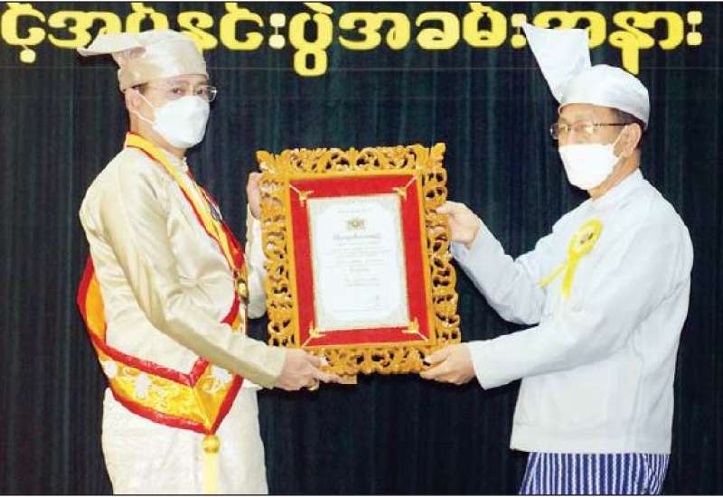 ၂၀၂၁ ခုနှစ် သာသနာတော်ဆိုင်ရာ သာသနာနုဂ္ဂဟဘွဲ့ တံဆိပ်များ ချီးမြှင့်အပ်နှင်းပွဲ အခမ်းအနားကို ယနေ့ မွန်းလွဲ ၁ နာရီတွင် နေပြည်တော်ကောင်စီရုံး ဇမ္ဗူသီရိခန်းမ၌ ကျင်းပသည်။