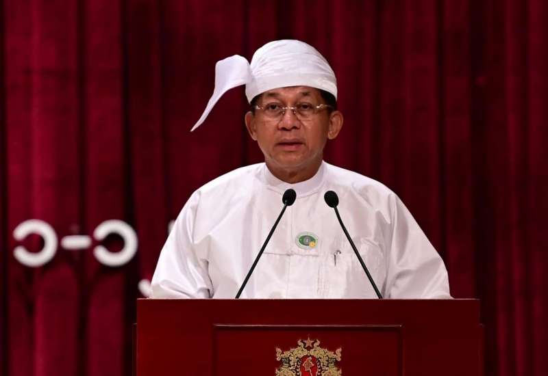 ပြည်ထောင်စုသမ္မတမြန်မာနိုင်ငံတော် နိုင်ငံတော်စီမံအုပ်ချုပ်ရေးကောင်စီ ၂၀၂၁ ခုနှစ်၊ သာသနာတော်ဆိုင်ရာ သာသနာနုဂ္ဂဟ ဘွဲ့တံဆိပ် ချီးမြှင့်ပွဲ အခမ်းအနားအား ယနေ့ မွန်းလွဲပိုင်းတွင် နေပြည်တော်ရှိ နိုင်ငံတော်စီမံအုပ်ချုပ်ရေးကောင်စီဥက္ကဋ္ဌရုံး သဘင်ဆောင်ခန်းမ၌ ကျင်းပပြုလုပ်ရာ နိုင်ငံတော်စီမံအုပ်ချုပ်ရေးကောင်စီဥက္ကဋ္ဌ နိုင်ငံတော်ဝန်ကြီးချုပ် ဗိုလ်ချုပ်မှူးကြီး မင်းအောင်လှိုင် တက်ရောက်၍ ဘွဲ့တံဆိပ်နှင့် အဆောင်အယောင်များ ချီးမြှင့်အပ်နှင်းသည်။